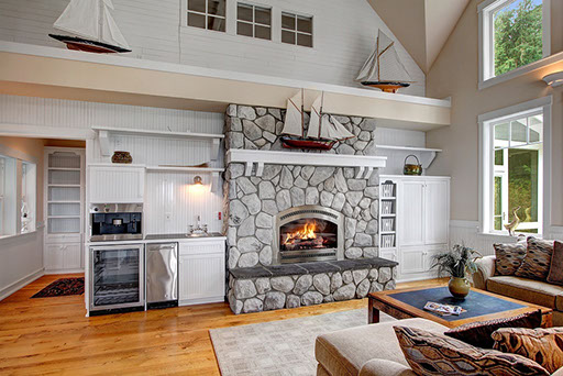 Beautiful custom high bank water front home, fantastic views from everywhere !! A wonderful home , radiant heated hardwood floors, 3 gas fireplaces, coveted Open Concept living, beamed 23 ft ceilings, chef's kitchen with the view, large farmer's sink, prep station. Main floor Master suite, 2 upper guest suites and plenty of additional sleeping rooms and spaces. You can feel the fun and joy! Serene park-like 4.6 acres down the drive. 160' of water front below. 3 car heated garage. Close to dining, shopping and Coffee!