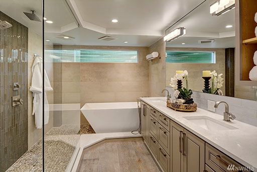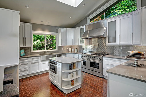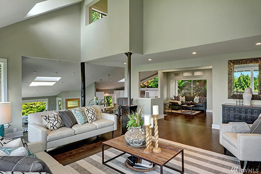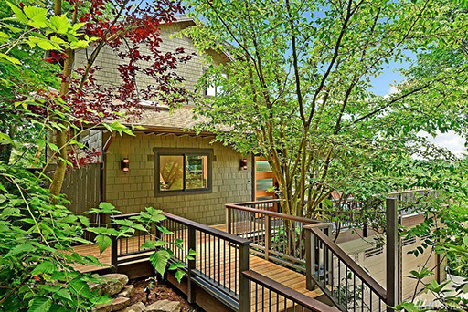 Outstanding Custom Remodel on the coveted west side of Mercer island! Surrounded by maples, firs, pines and green space. Views of the lake & city. Transformed into a fantastic 2016 Multi-level NW Contemporary with beautiful open spaces. Primary Master Suite on the main floor and the 2nd Master Suite on top floor w/ a big deck & a view of the Lake. Living areas are enhanced w/floating stairs and glass rails. Media/Fam Rm with a Deck. 5 BR/ 4 BA. Decks on every floor. Smart house w/ a WOW factor.