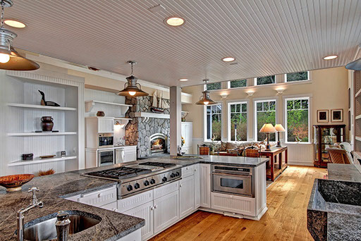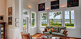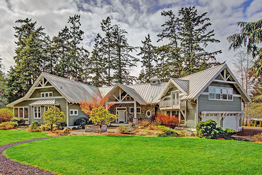 Beautiful custom high bank water front home, fantastic views from everywhere !! A wonderful home , radiant heated hardwood floors, 3 gas fireplaces, coveted Open Concept living, beamed 23 ft ceilings, chef's kitchen with the view, large farmer's sink, prep station. Main floor Master suite, 2 upper guest suites and plenty of additional sleeping rooms and spaces. You can feel the fun and joy! Serene park-like 4.6 acres down the drive. 160' of water front below. 3 car heated garage. Close to dining, shopping and Coffee!
